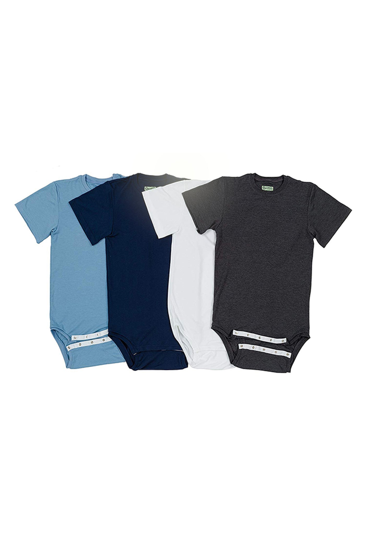 This popular bodysuit looks like a regular tee shirt, but snaps at the crotch for a neat appearance. Made of soft, interlock knit for maximum comfort They are cut wide at the hip and seat...